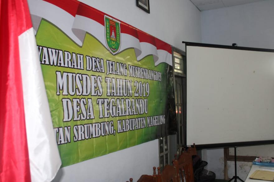 Musdes tentang tersebut, dihadiri Kepala Desa Tegalrandu beserta perangkatnya, Pendamping Lokal Desa, Para Ketua RT, Perwakilan LPP, LPMD, tokoh agama, masyarakat, Pengurus LPKK, kader Posbindu, perwakilan dari Lembaga Pendidikan di Wilayah Tegalrandu, Tokoh agama, KPMD, Pengurus Gapoktan, serta Perwakilan pengelola wisata Randu Ijo dan wisata Rawa Bambu.